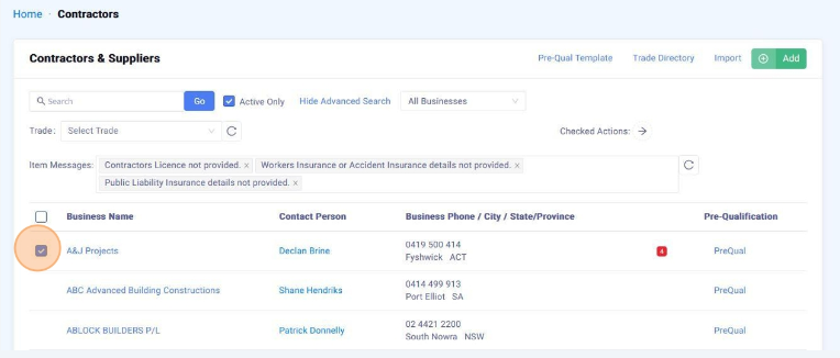How to send/Resend Pre-qualification emails and warnings to Contractors