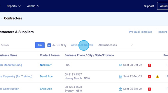 Alternatively, if you want to send to all Contractors at once, click "Advanced Search".