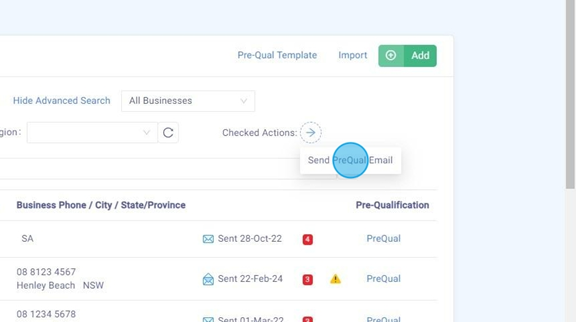 Click "Send PreQual Email". This will send each Contractor a PreQual Email.
