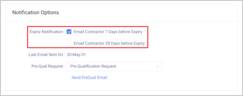 You also have the option to automatically remind contractors when their items are due to expire, either 7 or 28 days before expiry.
