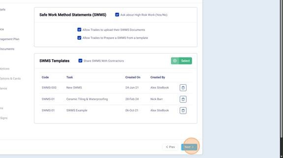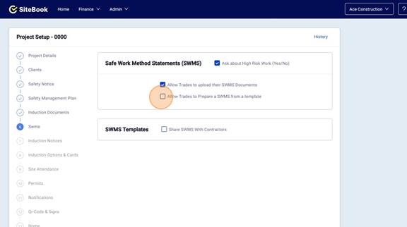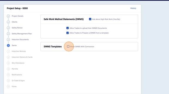 5. Click the "Allow Trades to upload their SWMS Documents" field