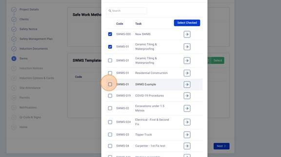 12. Click "Select Checked" to add all the selected SWMS to be shared