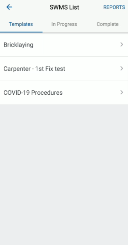 Clicking "Prepare a SWMS from a Template" will display the SWMS that was shared.