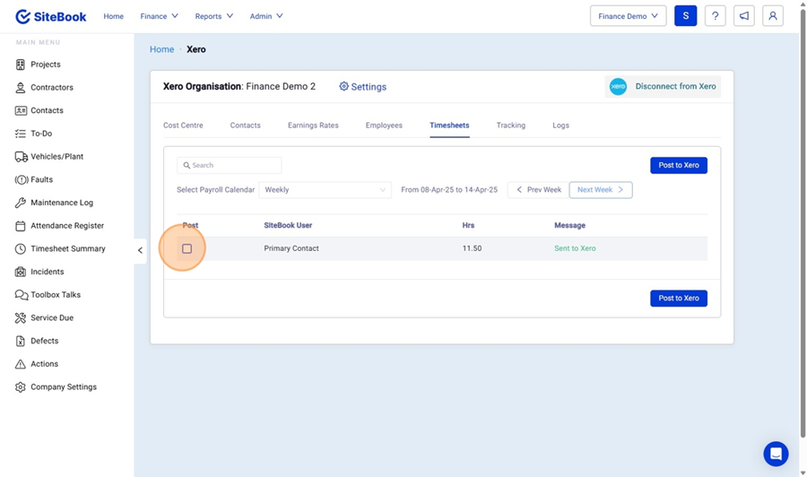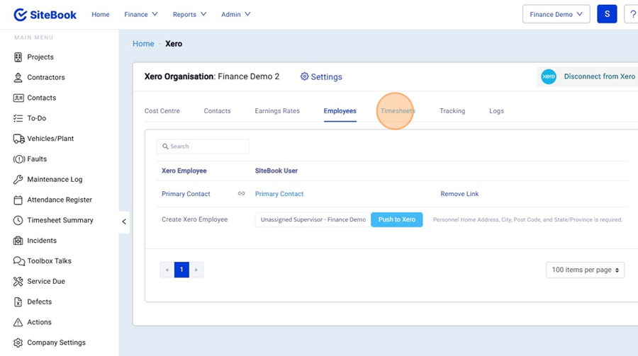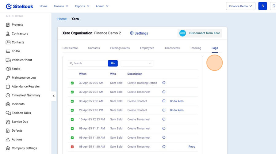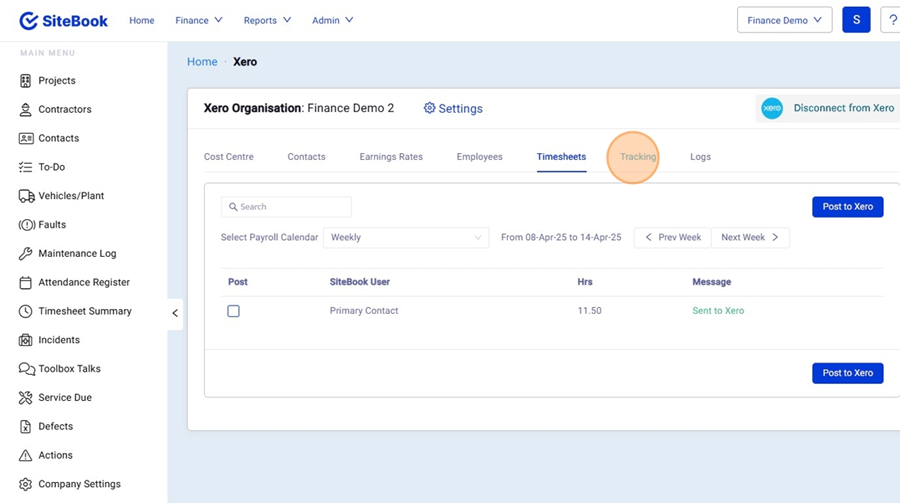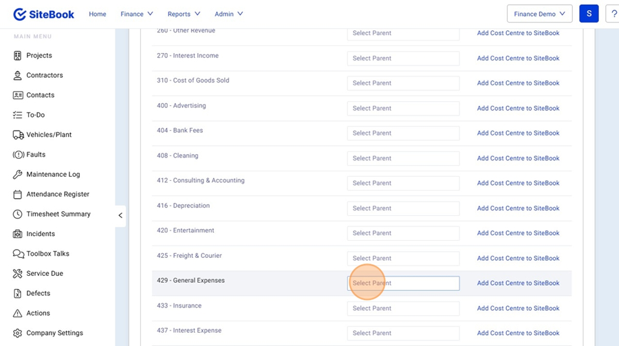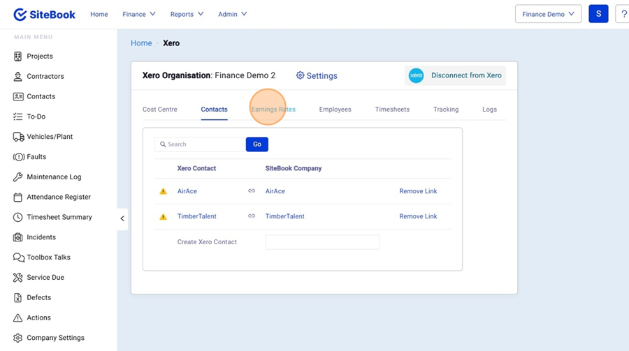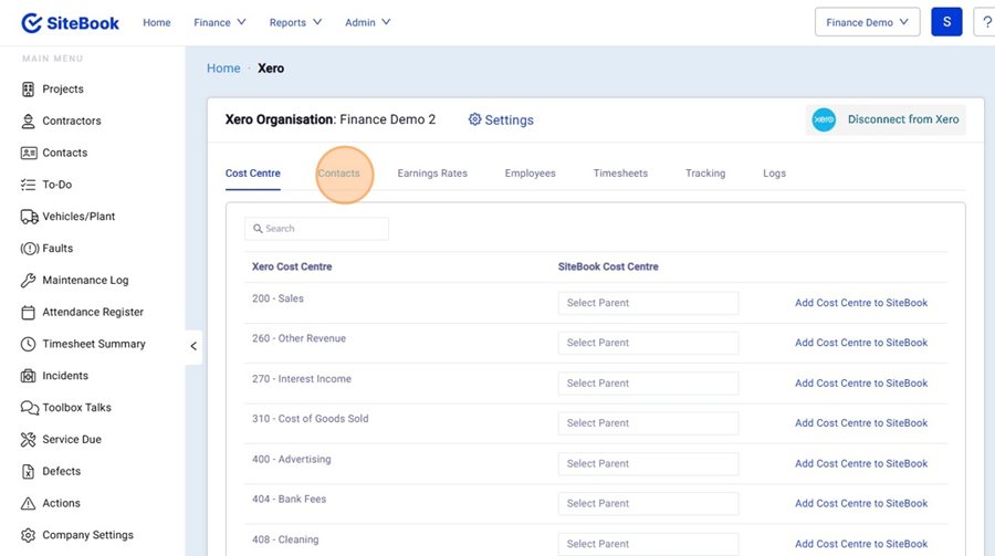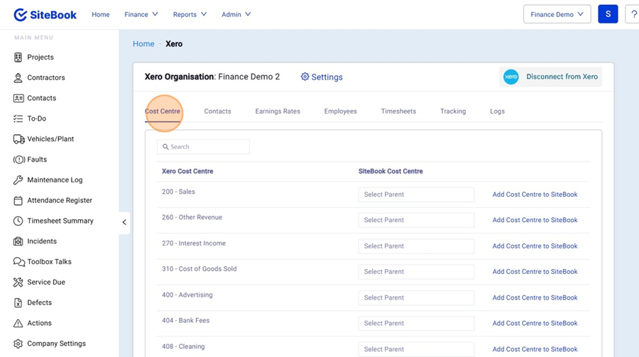 Linking SiteBook Cost Centres to Xero Cost Centres