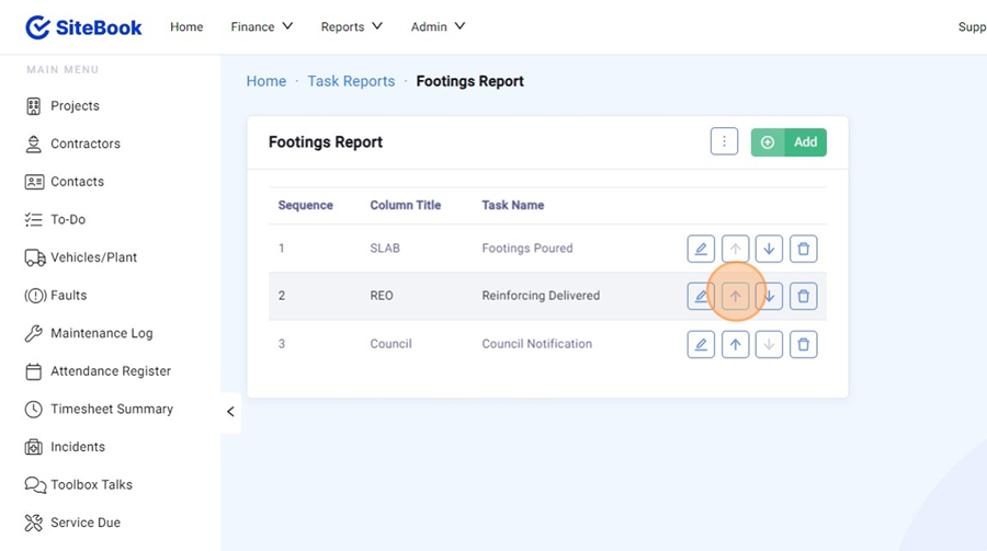 7. Click the arrow Icons to re-order the Tasks in the report.