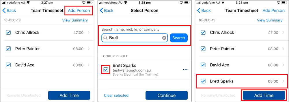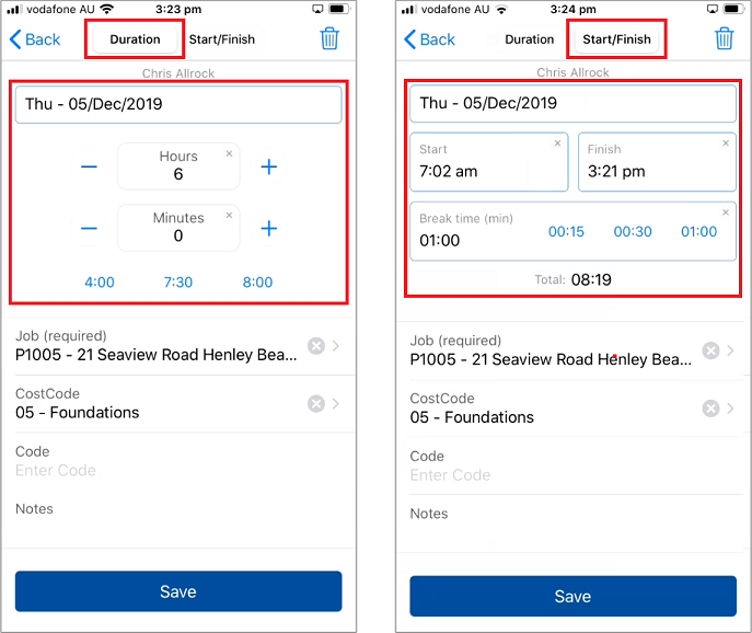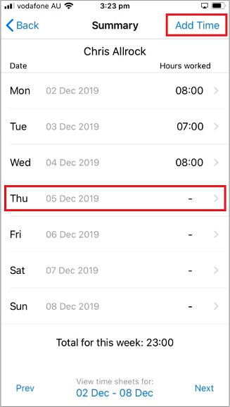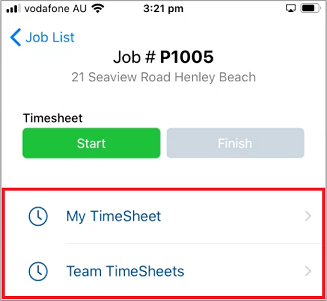 After Time Sheets have been set up from the Control Centre, they can be accessed within the mobile app