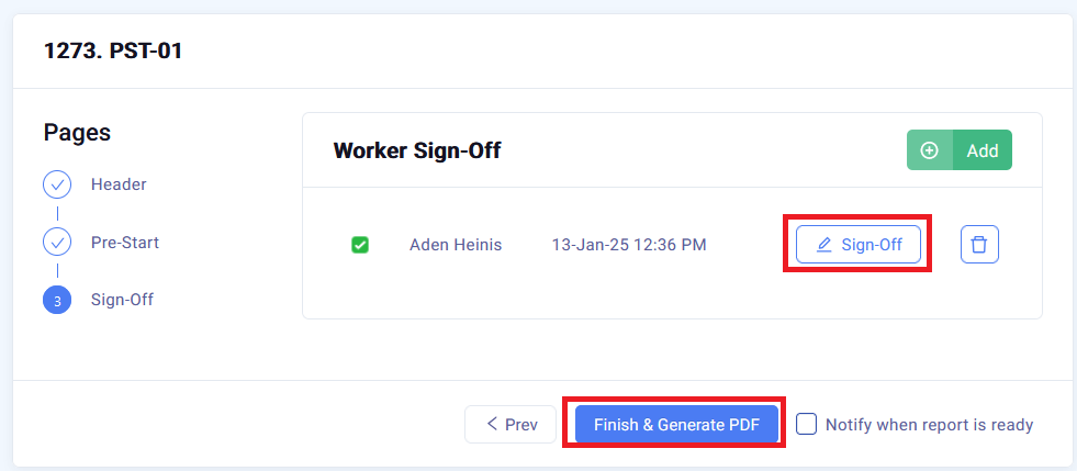 Once the Checklist is complete, click Sign-Off to Sign-Off
